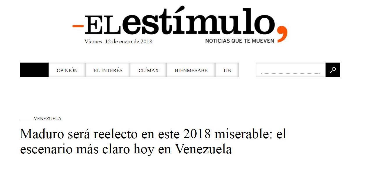 El portal web opositor El Estímulo publicó un artículo en el que augura la victoria del chavismo en las elecciones presidenciales de 2018 ante la ausencia de propuestas emergentes de la oposición, según señala el análisis.