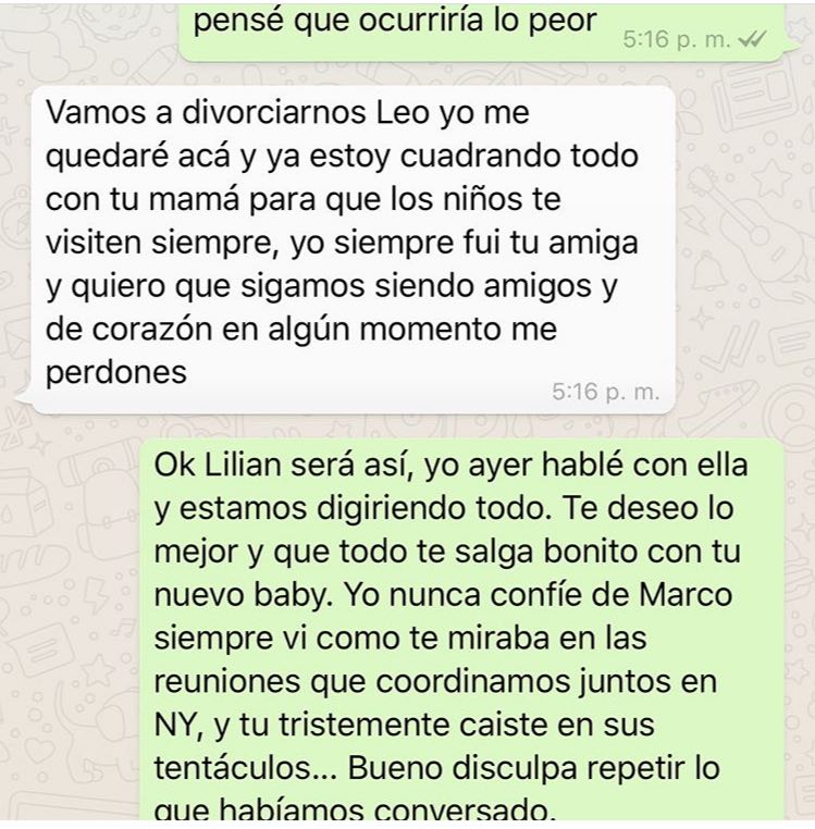 Se filtró un chat de whatsapp entre Lilian Tintori y Leopoldo López que confirmaría que Marco Rubio es el verdadero padre de la criatura