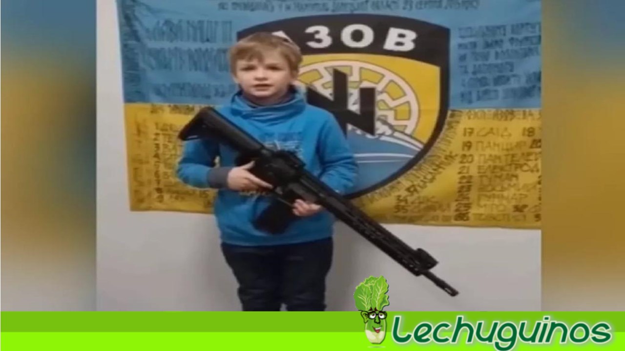 En un video que se ha hecho viral en las redes sociales se observa como un niño, con un fusil en la mata y junta al símbolo nazi que caracteriza al batallón de ultra nacionalistas ucranianos Azov.